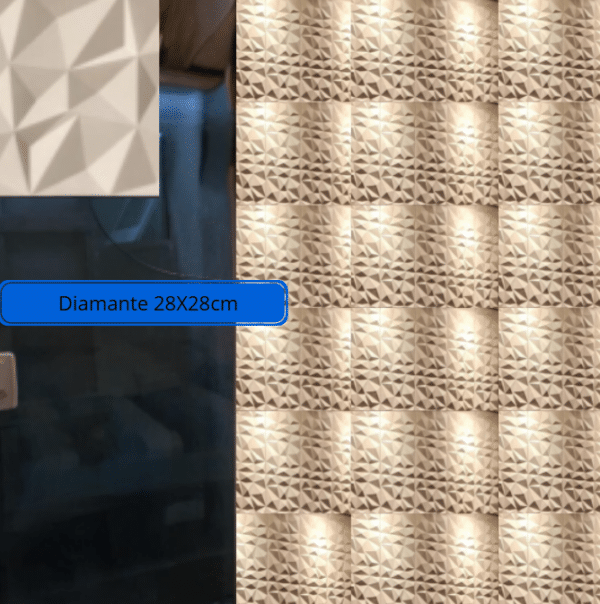 Adicione um toque de luxo e sofisticação à sua decoração com o Revestimento Diamante. Com um design inspirado nas formas e linhas do diamante, este revestimento traz uma estética brilhante e refinada, ideal para quem busca transformar qualquer espaço em uma verdadeira obra de arte. Sua textura única reflete luz e cria um jogo visual de sombras e brilhos que deixa qualquer ambiente mais impressionante.